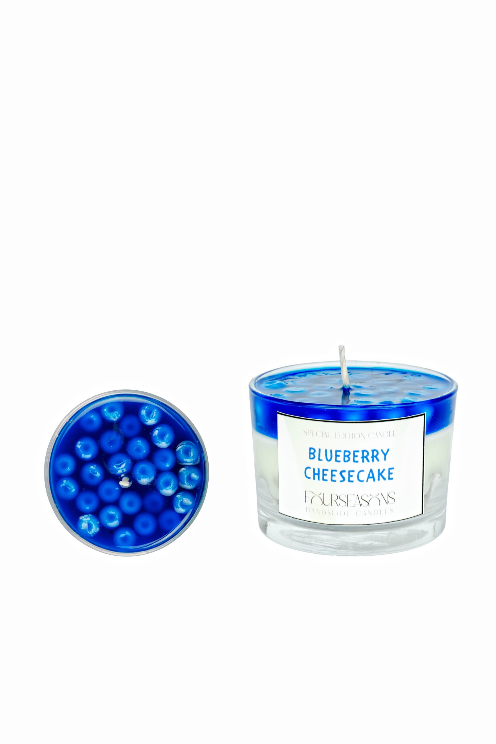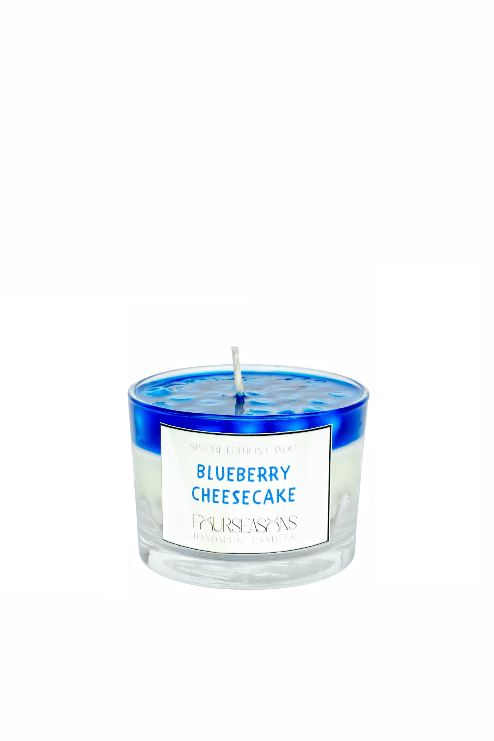 Χειροποίητο κερί σόγιας blueberry με άρωμα cheesecake. Εμπνευσμένο από το αγαπημένο γλυκό που ταιριάζει σε όλες τις περιστάσεις. Με 100% φυτικό κερί σόγιας, ποιοτικά αρώματα και προσοχή στην λεπτομέρεια. Απολαύστε το cheesecake σας χωρίς καμία θερμίδα!